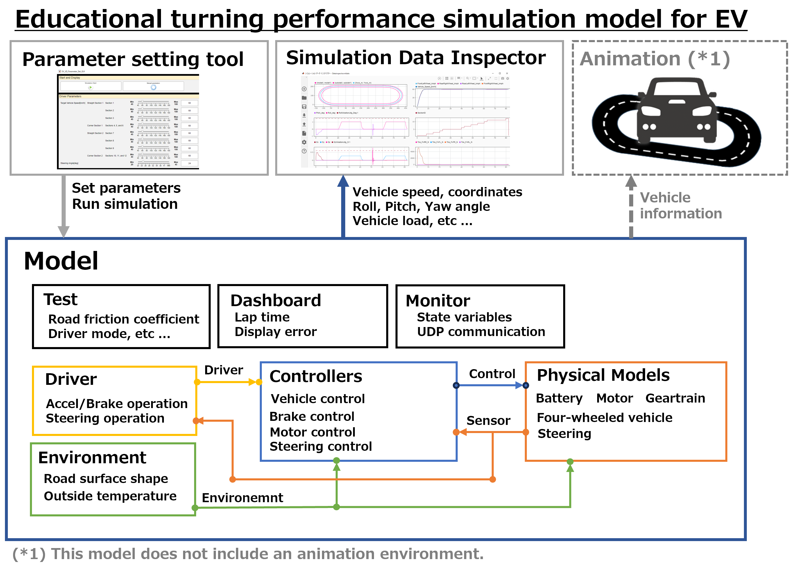 本モデルはBEVを想定した旋回性能、乗り心地評価ができるシミュレーションモデルである。