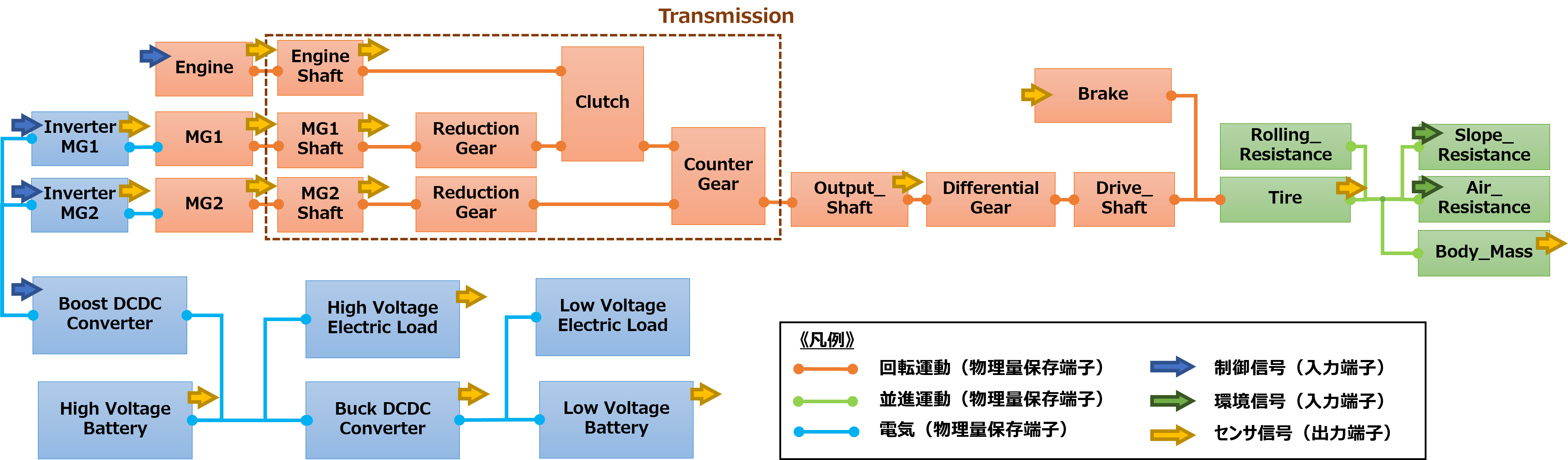 * This physical model can be connected to the control model, which is a case study model in “Plant Modeling I/F Guidelines for Vehicle Development” published by the Ministry of Economy, Trade and Industry of Japan.
