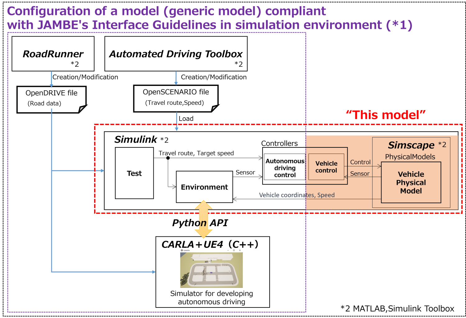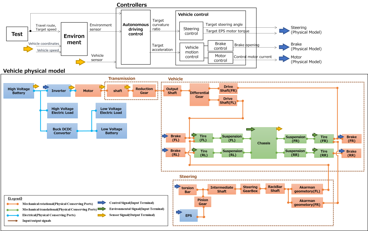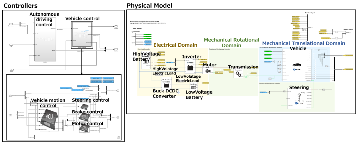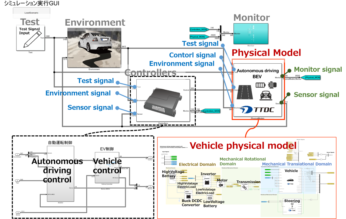 By integrating vehicle control and vehicle physical models for BEV into a generic model (*1) of the autonomous driving simulation environment,